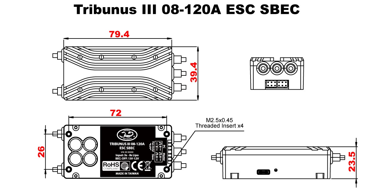| ESC Body Size | 39.5 x 79.4 x 23.0 mm (1.55 x 3.12 x 0.90 in) |